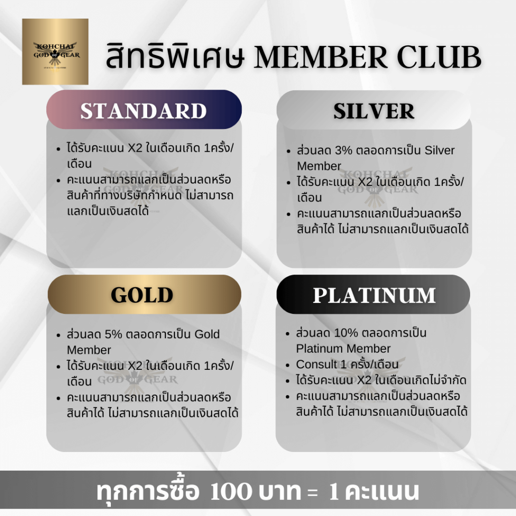 สิทธิพิเศษมากมายที่เราอยากมอบให้คุณ คะแนนสามารถแลกของรางวัล หรือ แลกส่วนลดได้ พร้อมทั้งระบบ Tier Member กับสิทธิพิเศษเหนือใคร ลดสูงสุดถึง 10 %